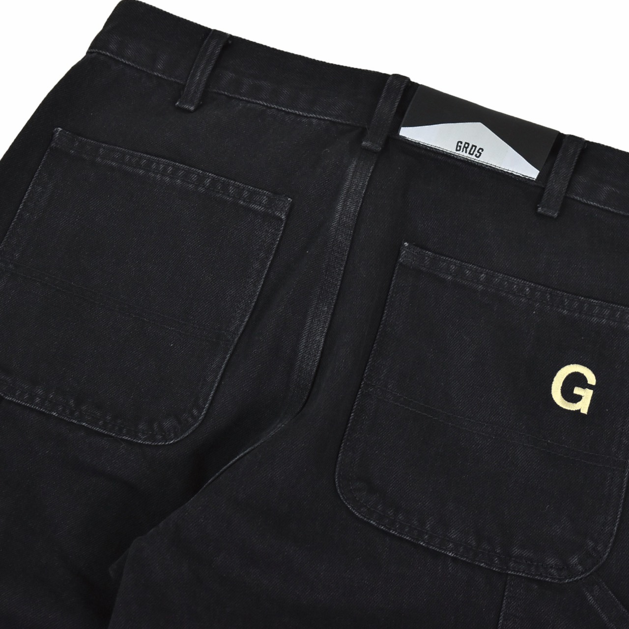 採用12.8OZ重磅丹寧布,經特殊水洗工藝處理,呈現自然舊化紋理與低調黑色調,兼具耐磨與舒適性。多口袋設計靈感源自工裝褲經典元素,實用且富有街頭風格。